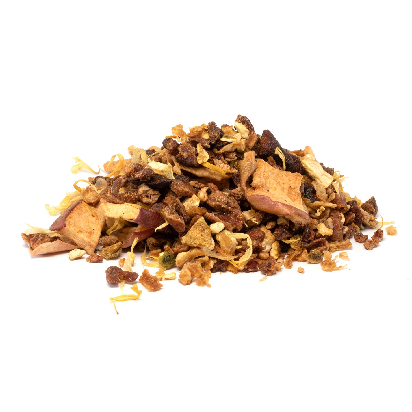 Ingrédients: Morceaux de poire, écorces de citron, écorces d'orange douce, tranches de pomme, arômes naturels de caramel, de citron, d'abricot, pétales de soucis