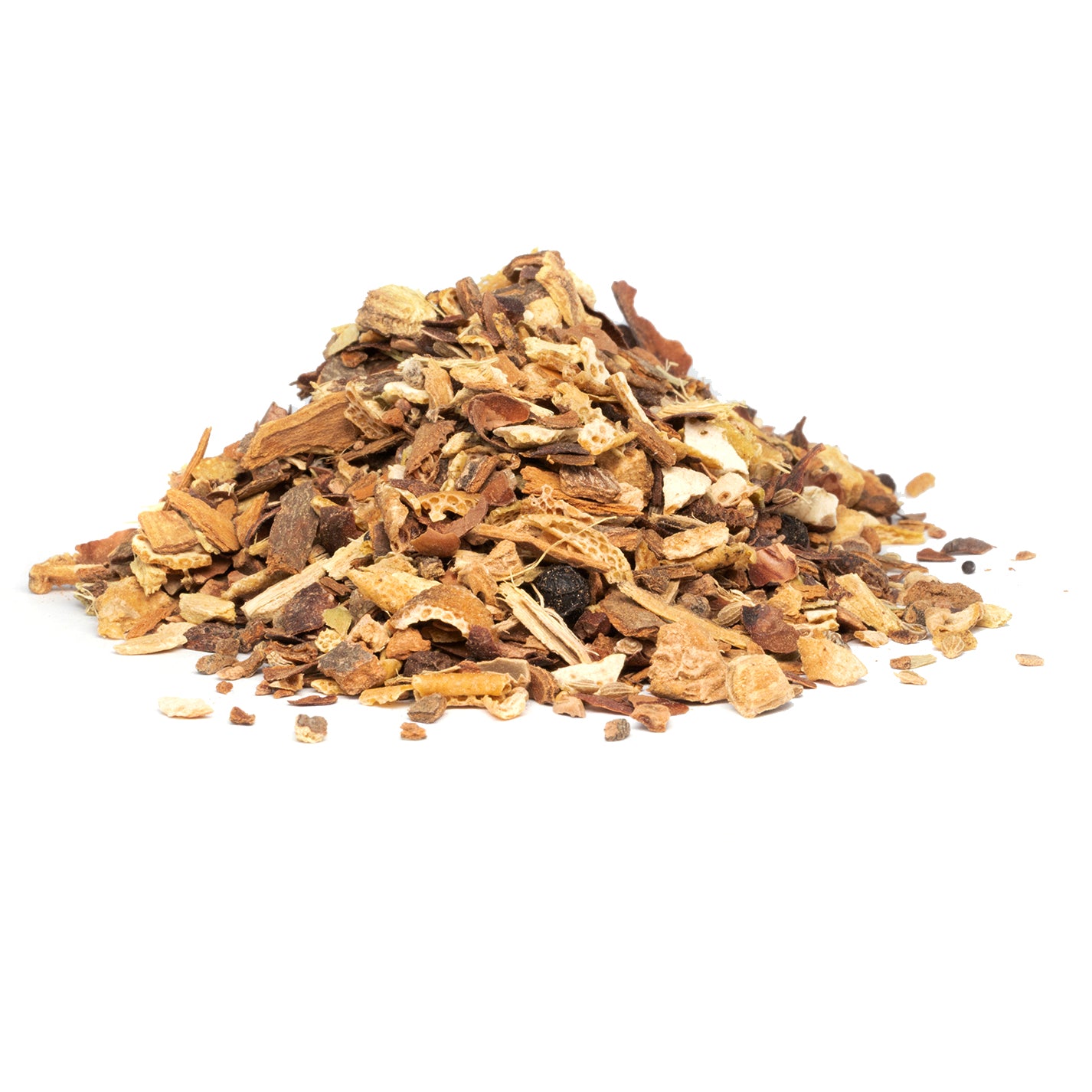 Une illusion olfactive fascinante qui rappelle un chocolat chaud, mais avec une légèreté aérienne en bouche. Les coques de cacao et la chicorée tissent une trame torréfiée et ronde, immédiatement réchauffée par un cortège d'épices puissantes (girofle, poivre, cardamome). La réglisse et la badiane viennent enrober le tout d'une sucrosité naturelle, offrant une finale longue et onctueuse. C'est le mélange digestif par excellence pour clore un repas riche avec gourmandise, sans lourdeur.